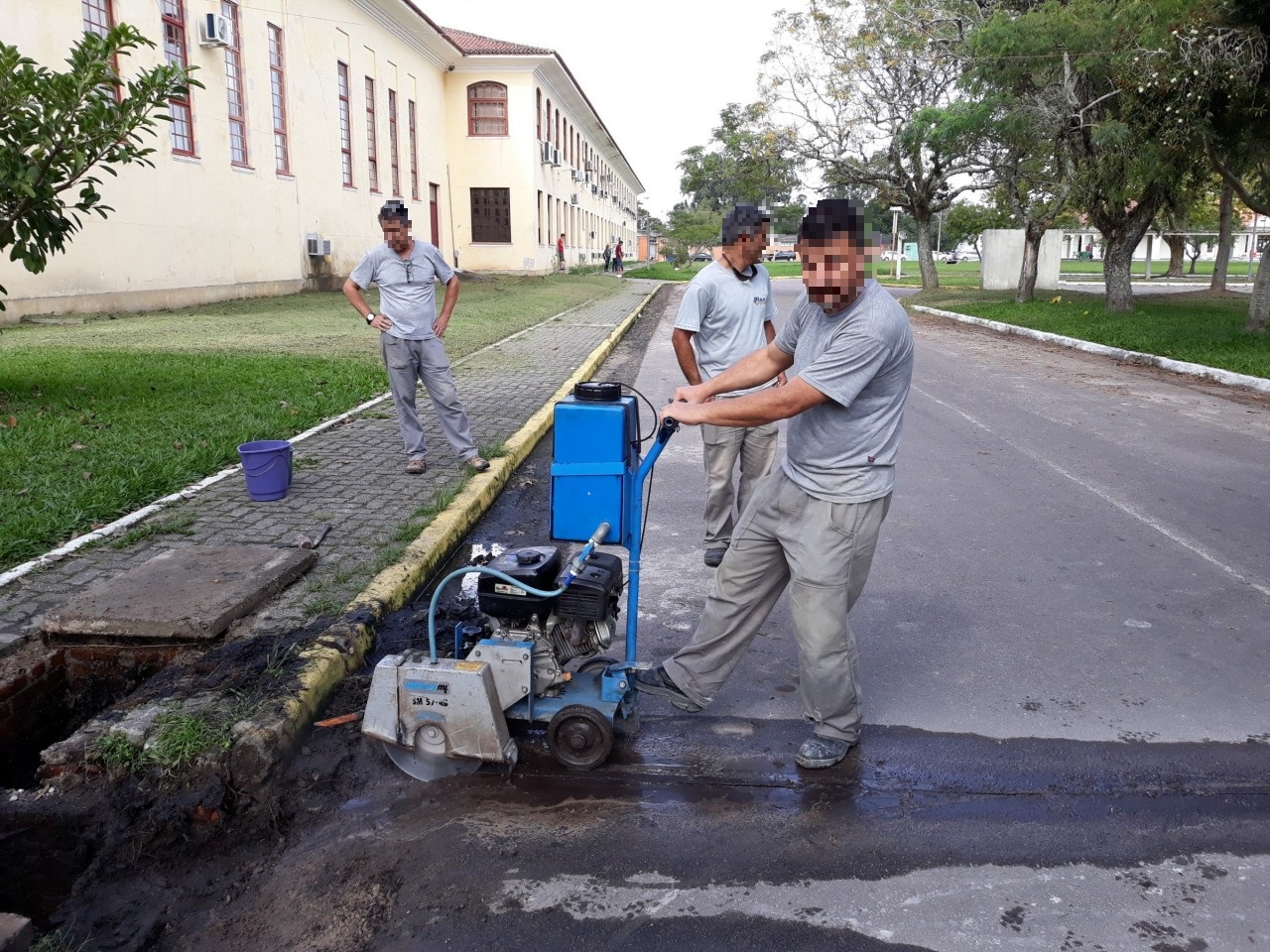 Parte do esgoto do Campus Capão do Leão precisou ser revitalizado pela equipe de Manutenção. A pavimentação precisou ser cortada para que a tubulação antiga, que estava entupida e causando extravasamento do sistema de esgoto, fosse substituída.