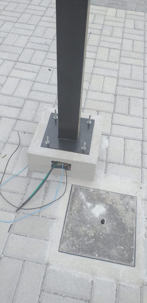 Confecção e instalação de luminárias em LED na praça seca do Campus Anglo