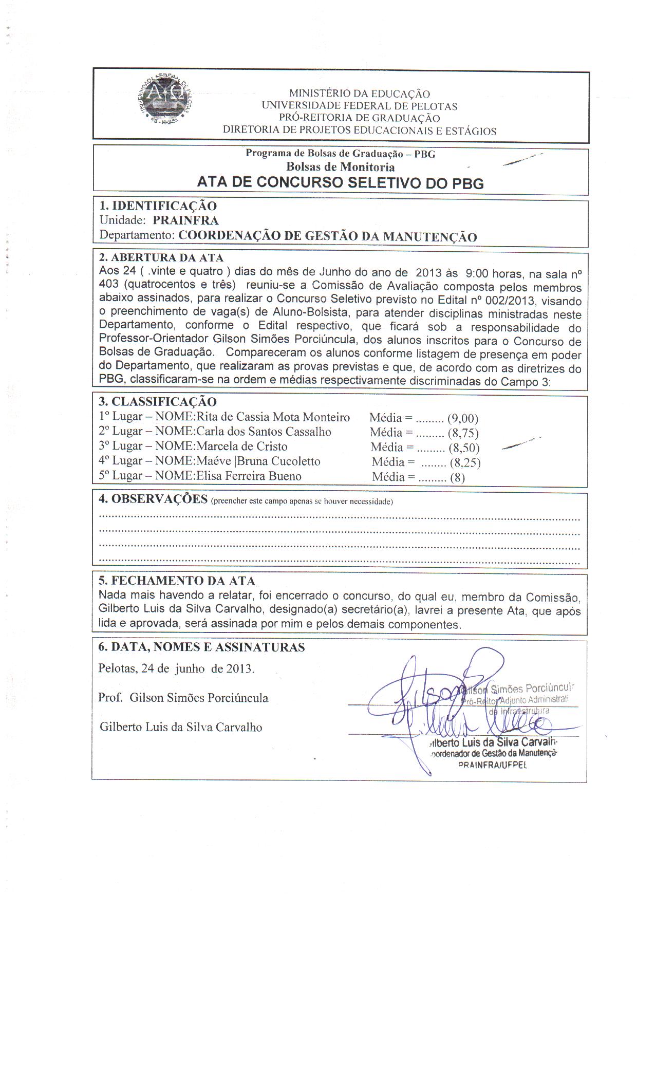 Coordenadoria de Gestão de Manutenção divulga ata de seleção de bolsistas PBG Publicado em 02/07/2013, na categoria Notícias.