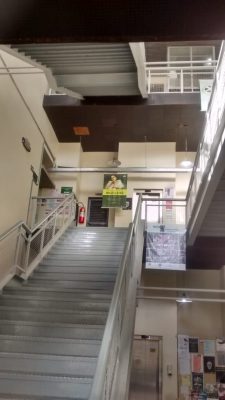 As escadas do prédio do Centro de Ciências Humanas e Sociais passou por intervenção da Seção de Manutenção dos Campi Pelotas. Os espelhos, anteriormente vazados, receberam fechamento em chapas metálicas que foram soldadas à estrutura existente. A ação atende uma reivindicação antiga da comunidade acadêmica que ficava sujeita a situações de constrangimento ao utilizar as escadas.