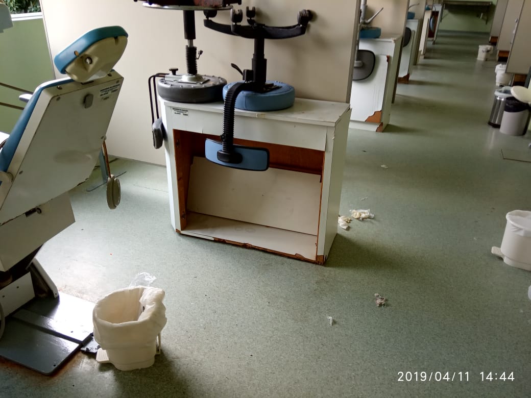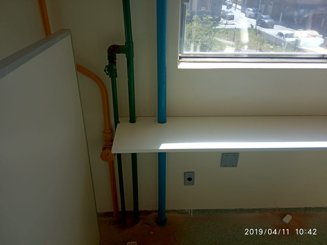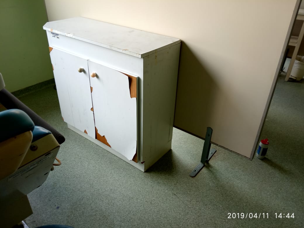 Houve a troca de armários, mesas e demais mobiliários quebrados da Clínica Norte e Sul por prateleiras de MDF laminado.