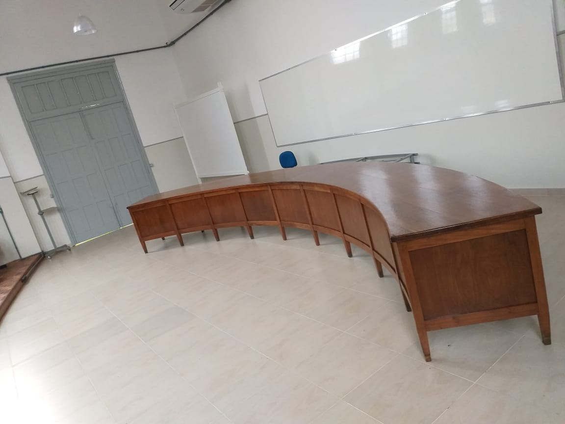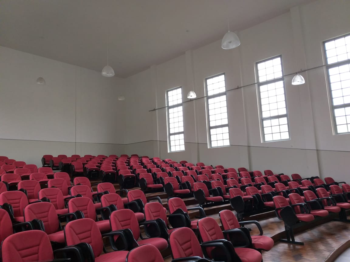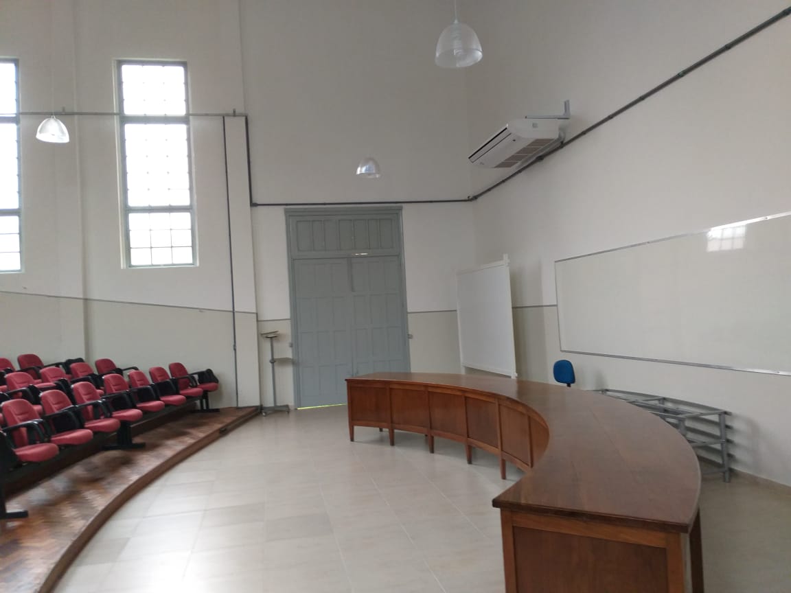 As atividades contemplaram a substituição de piso cerâmico, lixamento e aplicação de selador no piso parquet, pintura geral de paredes e esquadrias, revitalização do sistema de instalações elétricas, instalação de 02 climatizadores “Split”, fixação das cadeiras, adequações no sentido de aberturas das portas e troca de quadro.