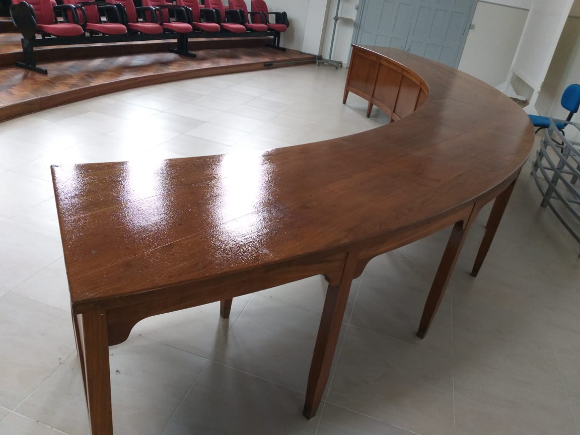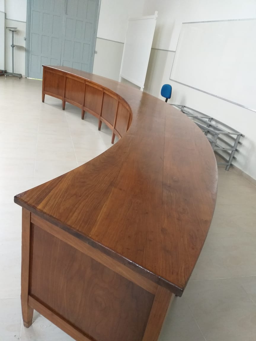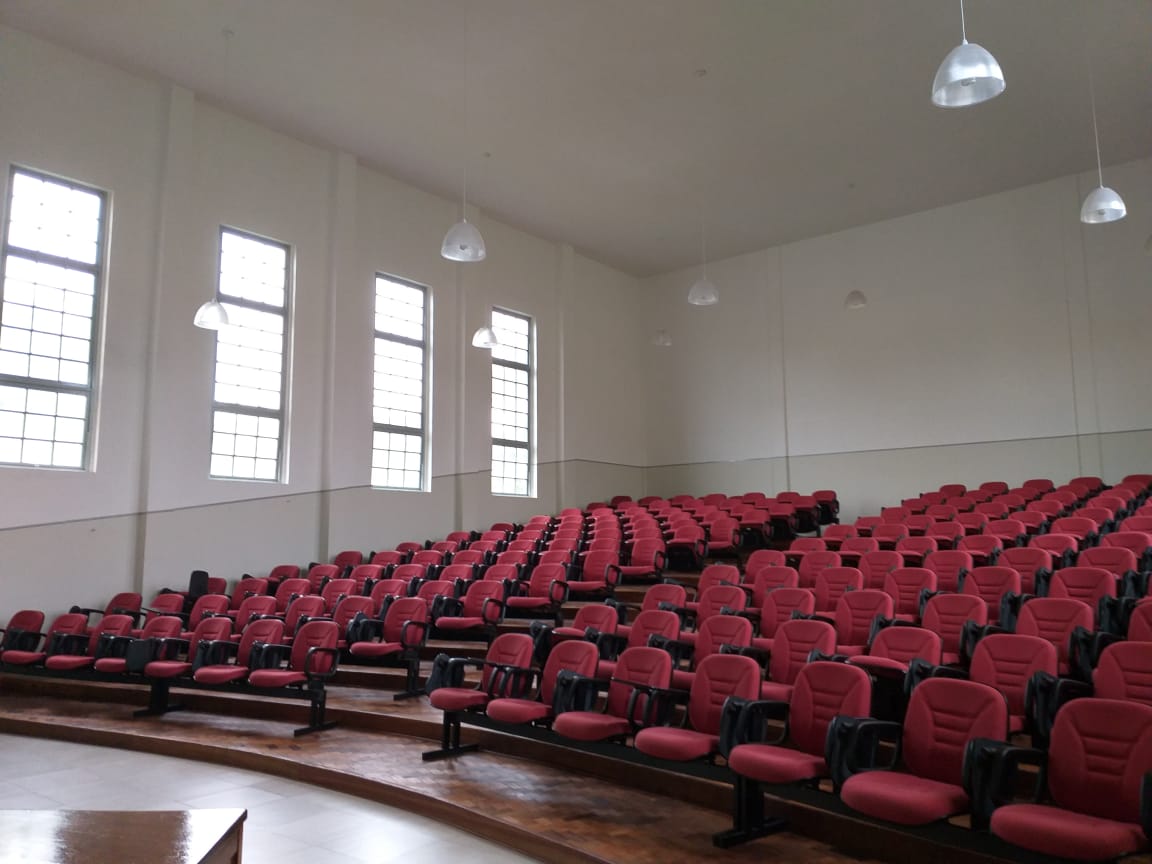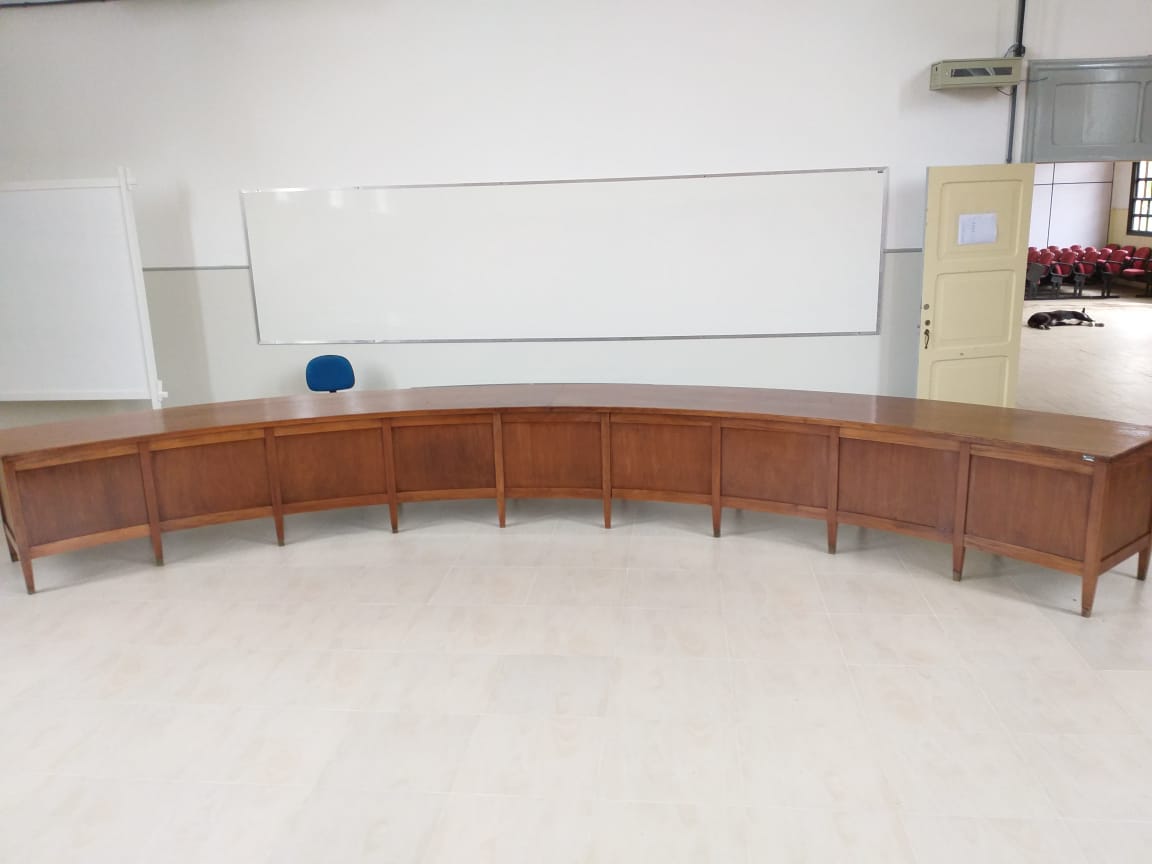 As atividades contemplaram a substituição de piso cerâmico, lixamento e aplicação de selador no piso parquet, pintura geral de paredes e esquadrias, revitalização do sistema de instalações elétricas, instalação de 02 climatizadores “Split”, fixação das cadeiras, adequações no sentido de aberturas das portas e troca de quadro.