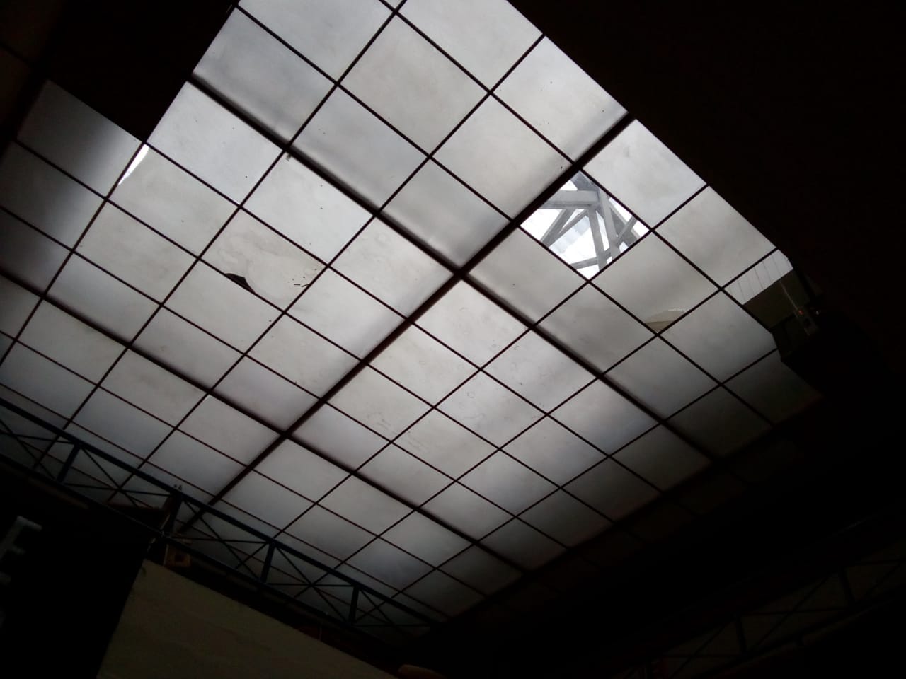 O prédio da Faculdade de Arquitetura da UFPel recebeu a substituição de telhas translucida em sua cobertura, bem como a limpeza das placas acrílicas da clarabóia interna do saguão.