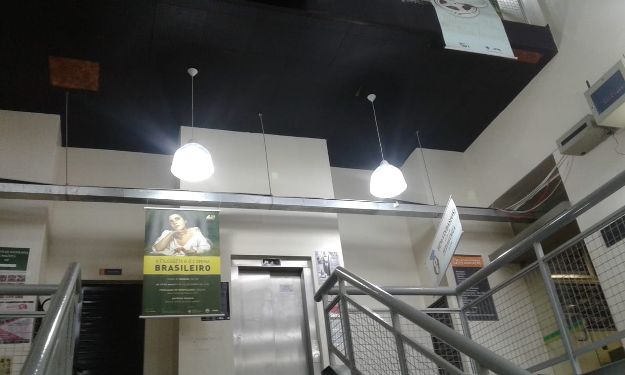 O hall do prédio do Centro de Ciências Humanas e Sociais recebeu a revitalização do seu sistema de iluminação. A ação realizada pela Seção de Manutenção dos Campi Pelotas atendeu à substituição de luminárias existentes e a troca de lâmpadas.