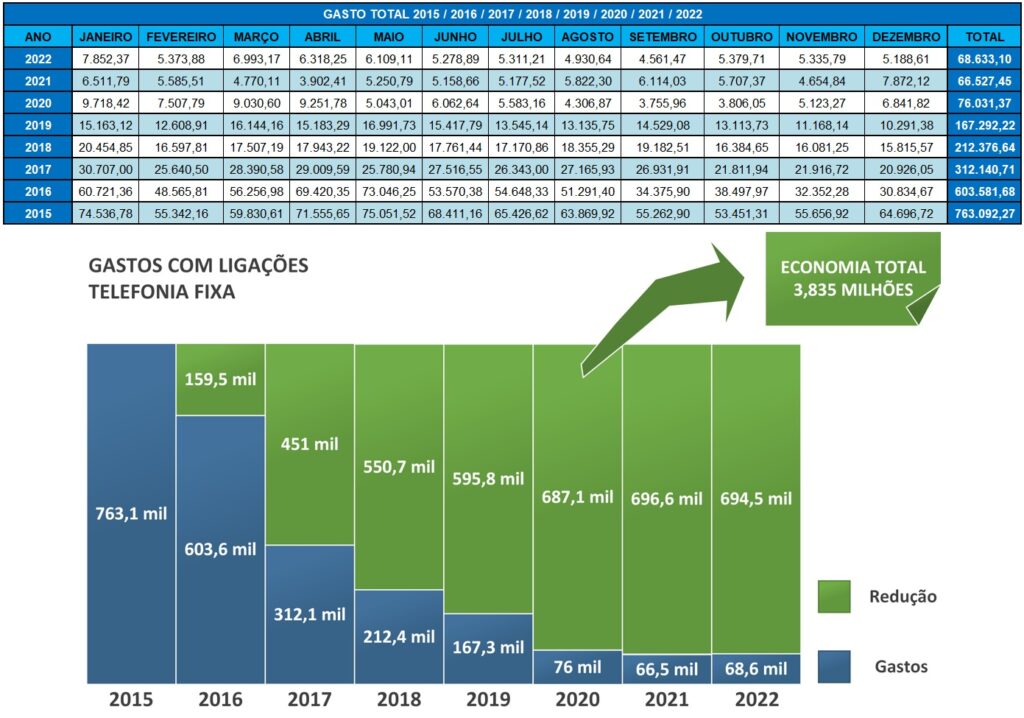Os resultados são notáveis, com economias na casa dos milhões de reais, conforme ilustrado na imagem a seguir (registro de despesas ao longo dos últimos anos).