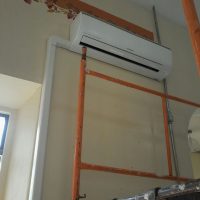 A livraria do Espaço Cultural da antiga Brahma recebe a instalação de aparelho de ar condicionado.