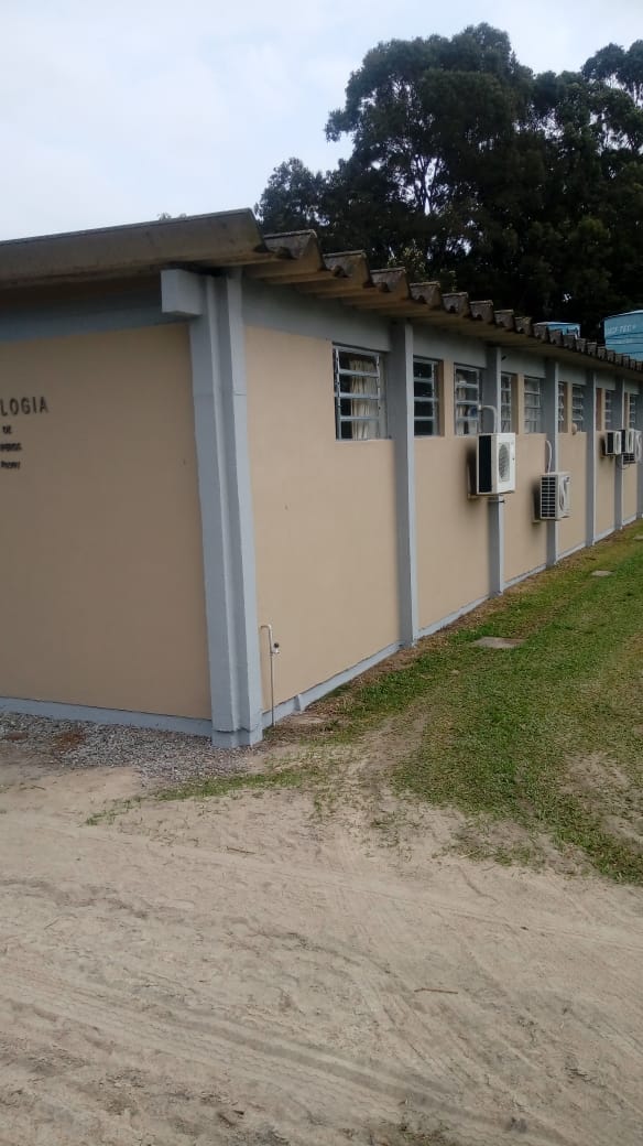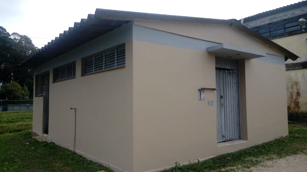 Prédios da piscicultura recebem pintura de suas fachadas.