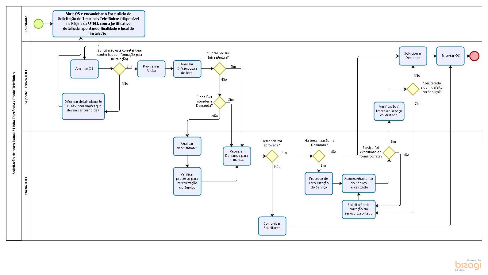 A figura abaixo mostra o fluxograma do processo para criação de um novo ponto telefônico.