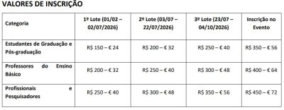 Obs: Os valores em euros são uma referência para participantes internacionais e podem variar